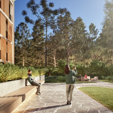 Jardins e bosque para momentos de conexão