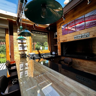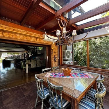 Espaço gourmet envidraçado com teto de vidro