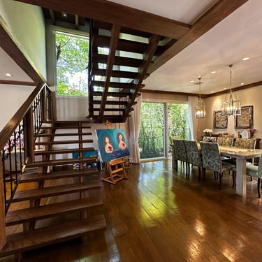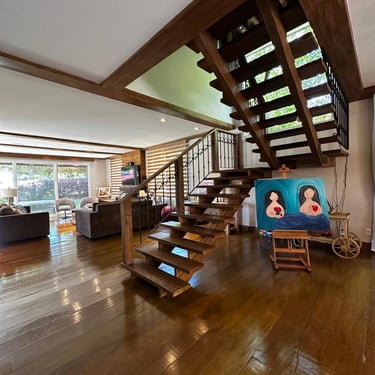 Escada e acabamentos em madeira nobre