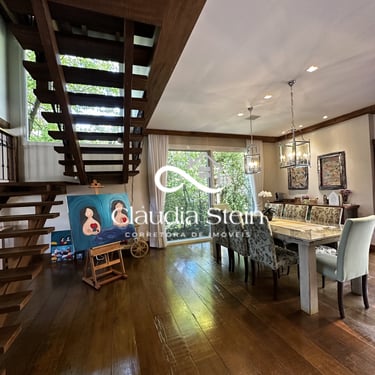 Escada e acabamentos em madeira nobre
